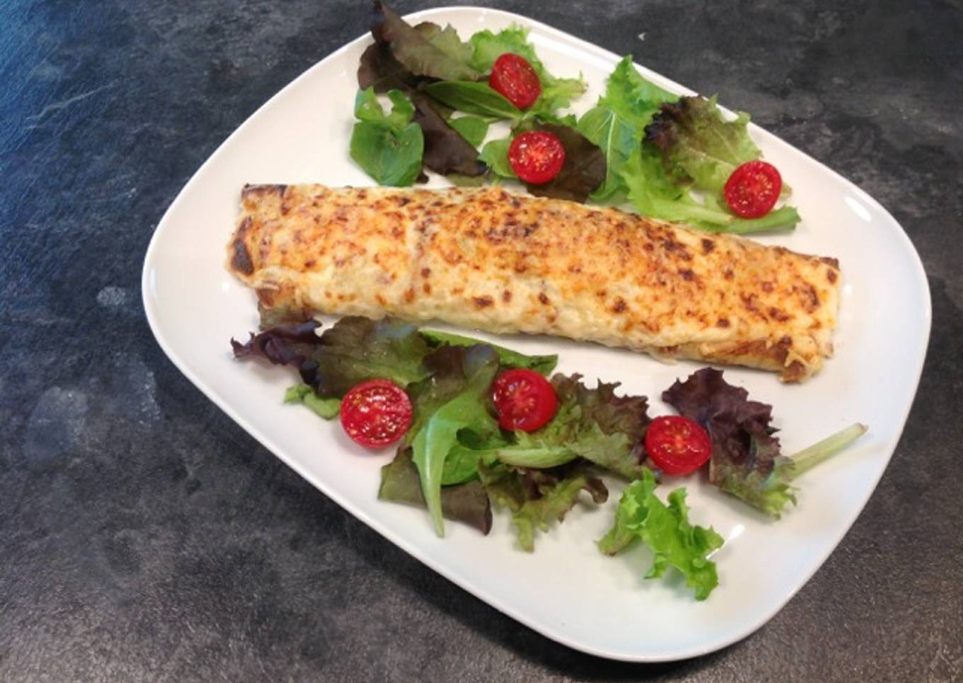 - Ponemos una cuarta parte de la mezcla que habíamos preparado en el centro de la crepe y la enrollamos como si fuera una tortilla a la francesa.