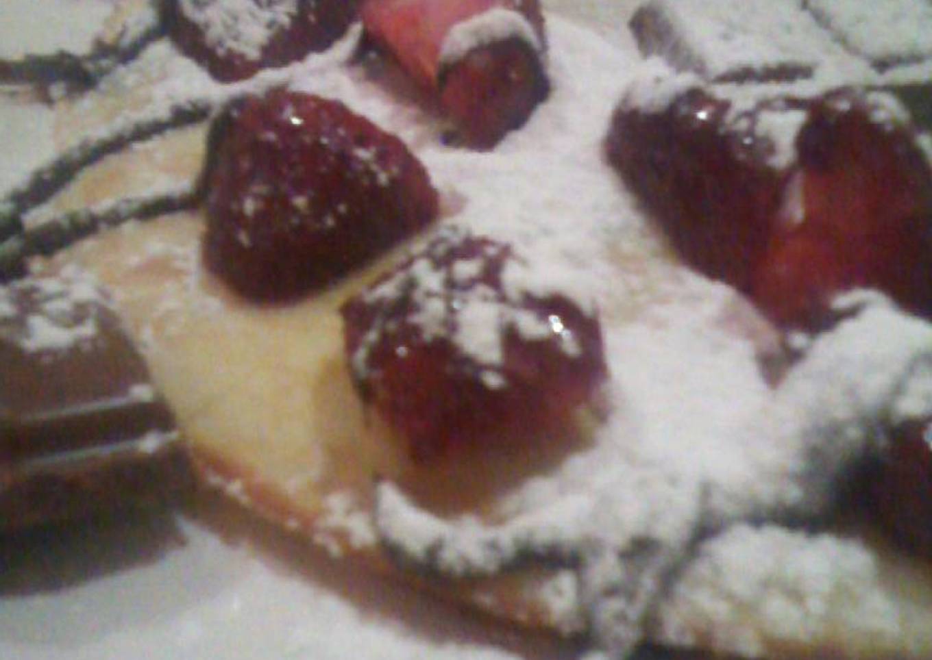 - Puedes rellenarlo con Dulce de leche, Nutella, o lo que quieras. en mi caso lo rellene con Dulce de leche y Rockler, lo cerré y le puse frutillas y azúcar impalpabe, chocolate.